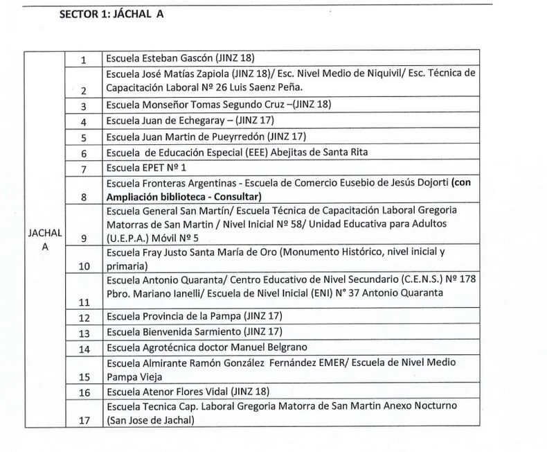 • SECTOR 1: Pocito A – 16 Establecimientos