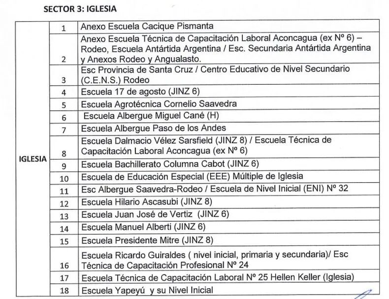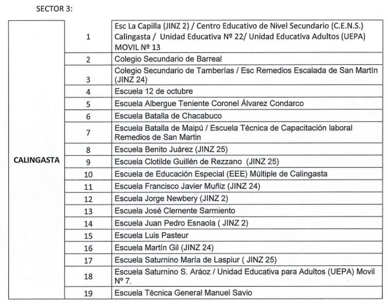 • SECTOR 3: Sarmiento A – 15 Establecimientos