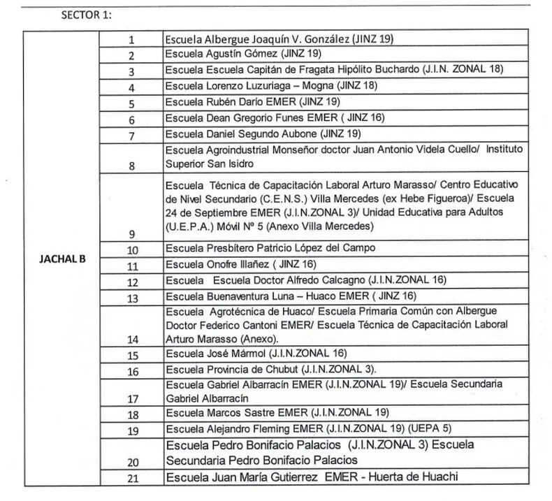 SECTOR 1: Chimbas A – 9 Establecimientos