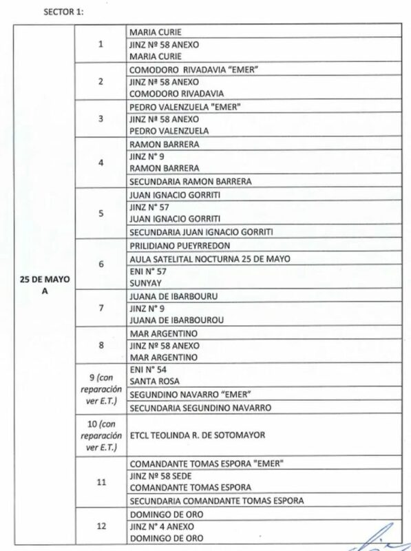 • SECTOR 1: 25 de Mayo A – 12 Establecimientos