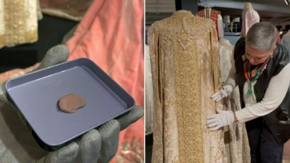 En una manga de la prenda, se encontró un bombón de al menos 118 años de antigüedad, que fue mordido al parecer por la aristócrata durante un baile, que se celebró en febrero de 1903 en el Palacio de Invierno y cuyos visitantes lucieron disfraces enjoyados al estilo del siglo XVII, según detalló la pinacoteca en un video, publicado en su cuenta de Instagram.