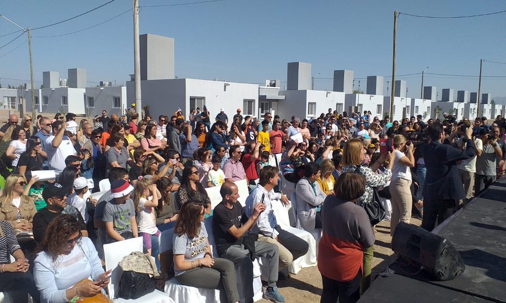 Este viernes 4 de noviembre se llevó a cabo la entrega de viviendas del barrio UDA II, en calles General Acha y Progreso, departamento Rawson. 83 propiedades que han sido entregadas a sus adjudicatarios por el gobernador. En el medio de la alegría, 57 familias reclaman por su vivienda con carteles, el gobernador prometió abordar una pequeña solución.