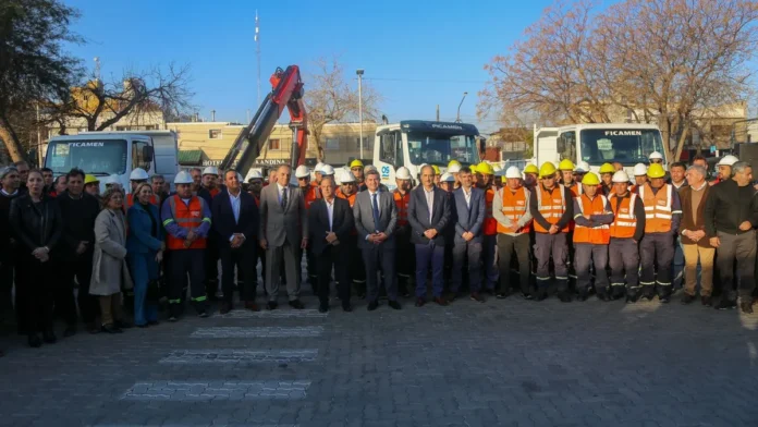 Obras Sanitarias, mediante un leasing con Banco San Juan, logró adquirir el derecho de uso de un conjunto de máquinas y camiones que permitirán llevar adelante más obras de agua potable y saneamiento en la provincia.
