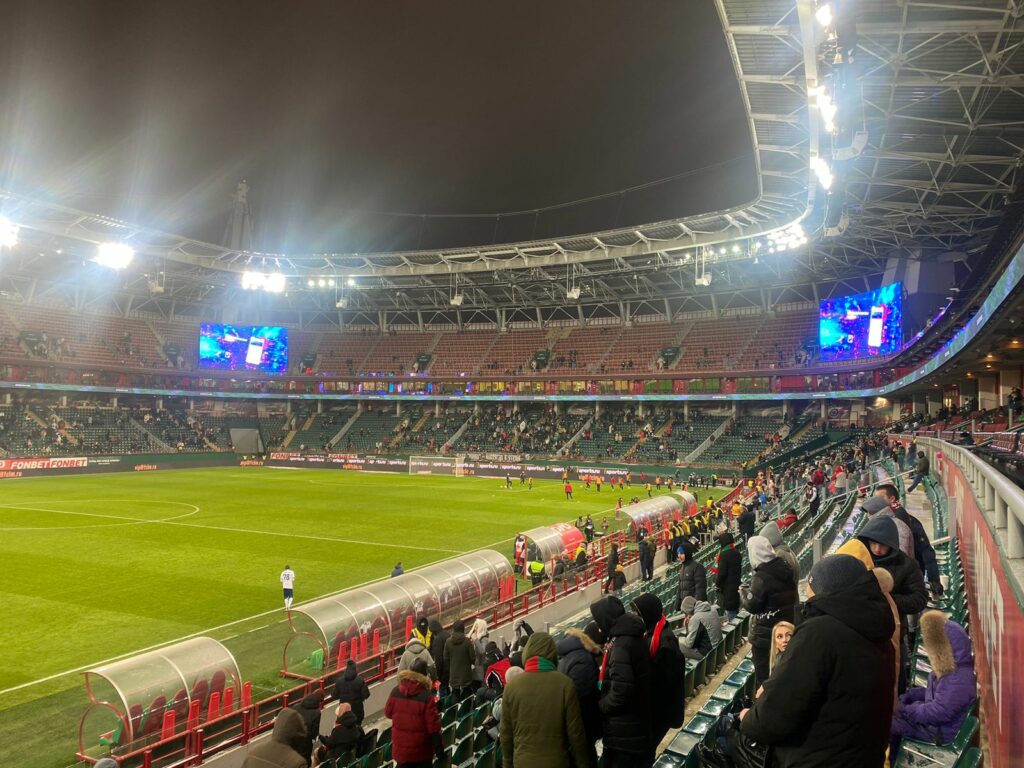 En el estadio RZD Arena cuya capacidad máxima es de 28,000 espectadores, ese domingo no llegaba ni a 2,000. Qué digo 2,000… no éramos ni 1,500 en todo el estadio. La ‘barra brava’ se encontraba ubicada detrás de la cabecera oriente y constaba de alrededor de 60 o 70 personas. Dispersos por el estadio se reparten el resto de aficionados que, así como nosotros, padecieron las gélidas temperaturas y sufrieron de las ráfagas de viento que se arremolinan entre las butacas del estadio y que vuelven casi insoportable estar ahí. Digo casi porque el amor a la camiseta lo puede todo y termina por ser el último resquicio de calor con el que la hinchada soporta la temperatura de -13 grados. Prueba de ello una señora, acompañada de otras dos, que no paró de gritar todo el partido de una forma que asemejaba más la sirena de una ambulancia que a la porra y aliento de una aficionada al fútbol.