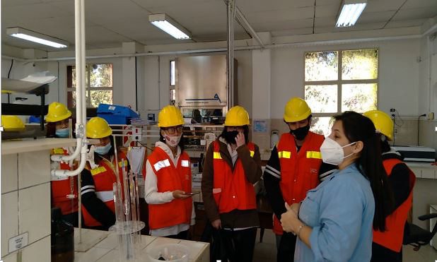 Mientras que en el departamento Minas, trabajaron en la Planta Piloto, que cuenta con equipamiento a escala. Los alumnos realizaron reducción de minerales en distintas etapas, clasificación y preparación para flotación. Estuvieron bajo la supervisión de la jefe del departamento de Minas Regina Bertero.