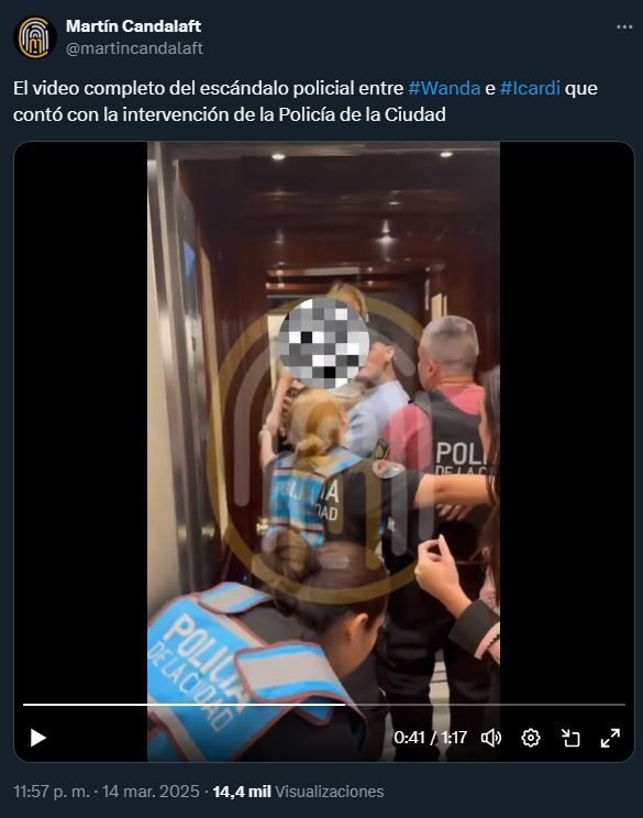 LAM publicó el video donde se la escucha a Wanda Nara gritando desesperada (clip que se muestra abajo). Sin embargo, el video largo publicado por Martín Candalft en X muestra la situación entera. Mauro no quiere soltar a su hija ante el pedido de la policía, mientras tanto su hija (la menor) empieza a pedir ayuda a los agentes.