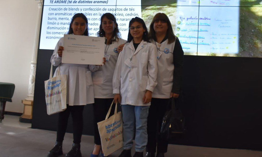 Estudiantes de la Escuela Provincia de Neuquén, ubicada en San Martín, que obtuvieron el segundo premio a nivel nacional con su proyecto institucional “Té Arome”. El trabajo es el resultado de la vinculación e investigación de diferentes currículas escolares.