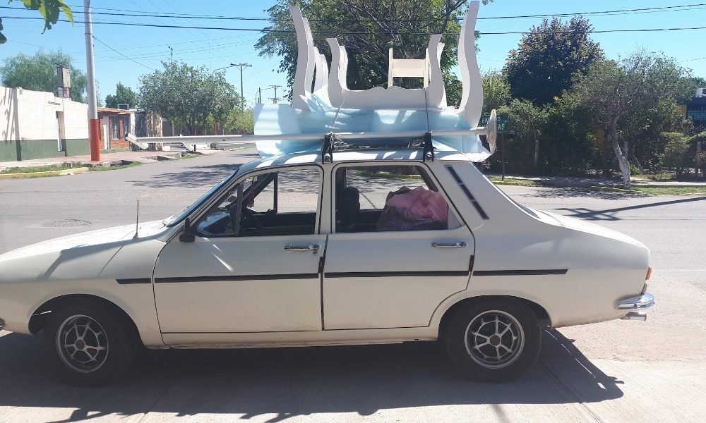 Romina llega en el Renault 12 de su suegro a cada evento, cargado hasta en el techo de la movilidad. Su suegro ayuda a descargar cada elemento en el que han dedicado horas de sus vidas para que quede perfecto, hasta en el más mínimo detalle. Golosinas envueltas una por una, nombres del agasajado bordados.