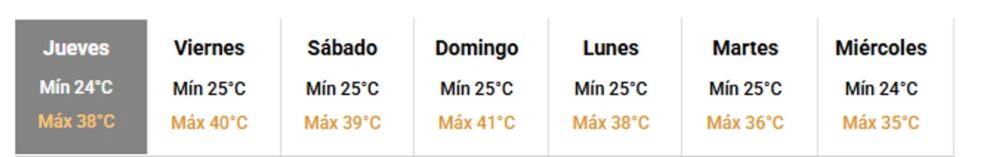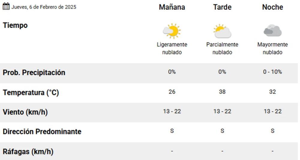 Para los días venideros se espera que las máximas sean superiores a los 40 grados y no hay probabilidad de lluvia.