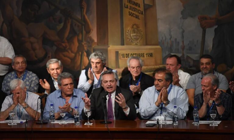 «Perón hizo la mayor revolución social que la Argentina recuerde. Entendió que había una parte de la sociedad argentina que estaba al margen, que no tenía derechos, que le llegaba solamente lo que decidían los más poderosos», valoró Alberto en sus primeras palabras, sentado junto a los triunviros Héctor Daer y Carlos Acuña en el salón «Felipe Vallese» del histórico edificio Azopardo, a quien Fernández recordó cómo fue asesinado por las dictaduras militares por ser parte de la Resistencia Peronista.