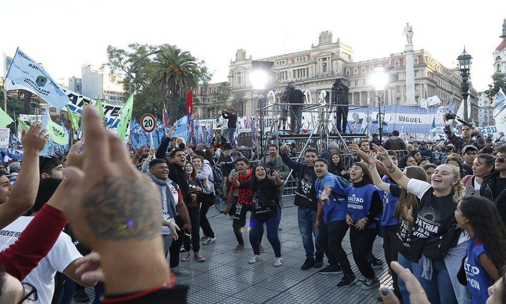 Organizaciones políticas, sociales y sindicales se movilizaron contra el lawfare y en apoyo a una candidatura de Cristina Fernández de Kirchner. Con un documento, los organizadores exigieron que sean removidos los magistrados involucrados en el escándalo del Lago Escondido y que termine la persecución político judicial, además de exigir la dimisión de los jueces supremos.