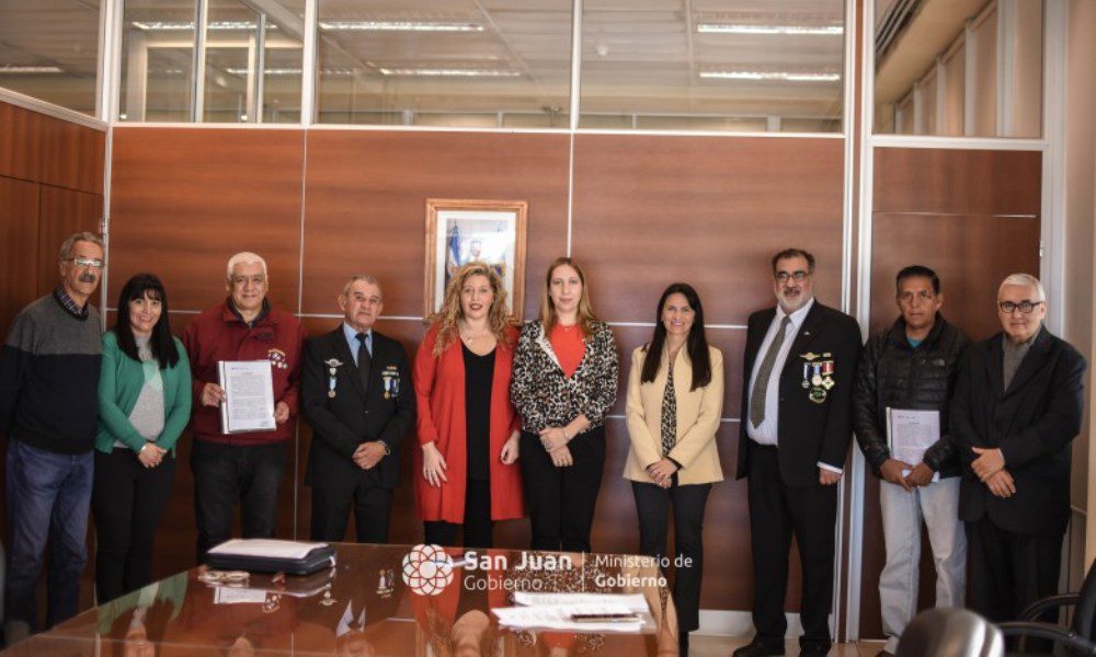 En Sala Huarpes del Ministerio de Gobierno, la ministra Laura Palma, la secretaria de Educación, Vanesa Mariela Lueje y representantes del grupo CEAS y 2 de abril, pusieron en marcha el programa por el cual los veteranos de guerra brindarán charlas sobre Malvinas en diferentes establecimientos educativos.