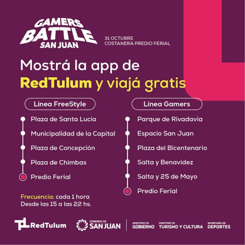 Para disfrutar al máximo del festival San Juan Gamers Battle este próximo domingo en el Costanera Predio Ferial, habrá transporte gratuito para todos aquellos jóvenes que deseen asistir.