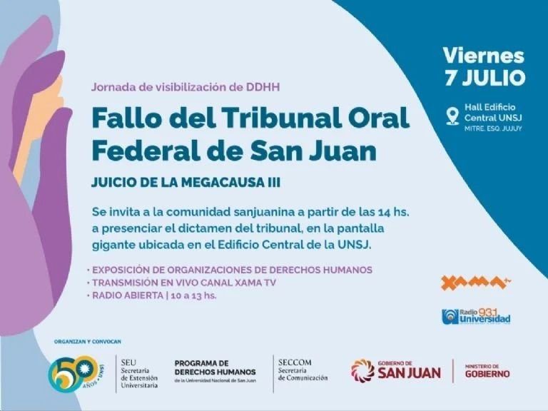 A la lectura de cargos y fallos puede participar toda la población. Además será transmitido por el canal Xama y por la Radio Universidad de San Juan.