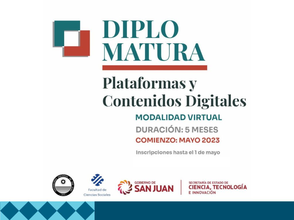 En mayo comenzará el dictado de la Diplomatura en Gestión de Plataformas y Diseño de Contenidos Digitales, propuesta enmarcada en el Programa Conocimiento para el Desarrollo -CODE- de la Secretaría de Ciencias, Tecnología e Innovación (SECITI) del Gobierno de la Provincia y dictada por docentes del Departamento de Ciencias de la Comunicación de la Facultad de Ciencias Sociales de la UNSJ.