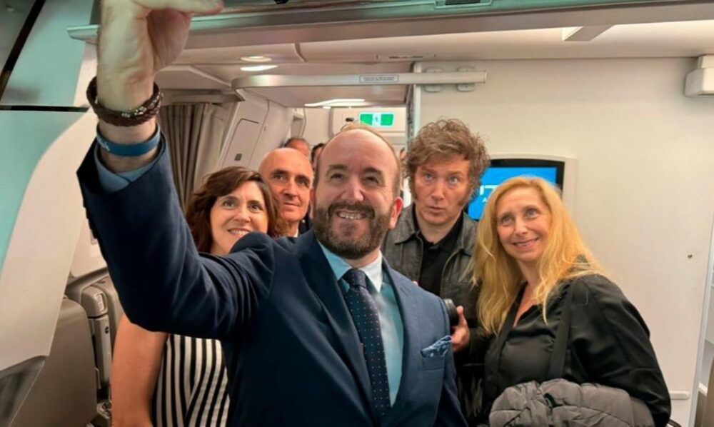 «El Presidente de la Nación regresa a la Argentina luego de su exitosa gira. Delirio en el avión antes del despegue», escribió en su cuenta de X el vocero presidencial, Manuel Adorni, quien adjuntó videos con imágenes de lo ocurrido en la aeronave.