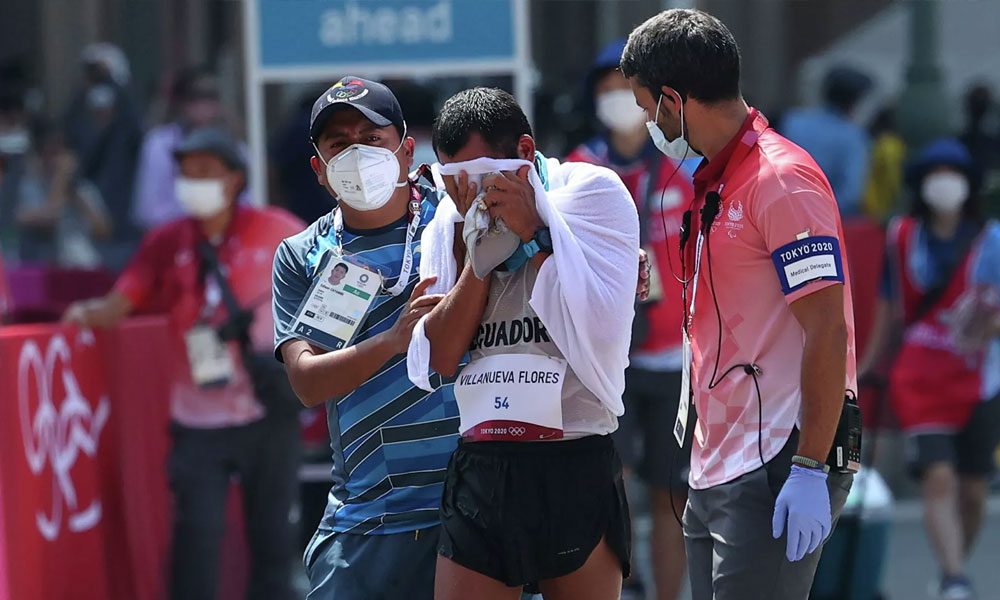 El atleta ecuatoriano Claudio Villanueva llegó en el último lugar de la marcha atlética de 50 kilómetros. Sin embargo, su tenacidad se convirtió en ejemplo, debido a que pudo completar la prueba a pesar de la muerte de su entrenador y una serie de lesiones que no había reportado.