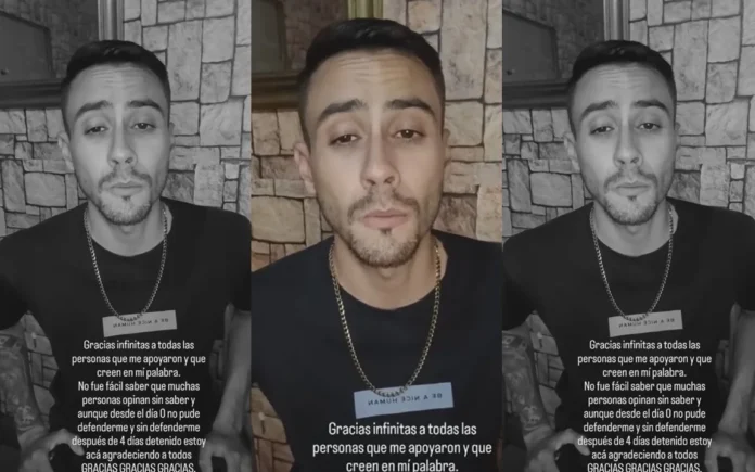 “Gracias infinitas a todas las personas que me apoyaron y que creen en mí palabra. No fue fácil saber que muchas personas opinan sin saber. Especialmente los medios que algún dia necesitaron de mi y siempre estuve para ellos. Aunque desde el día 0 no pude defenderme y sin defenderme después de 4 días detenido estoy acá agradeciendo a todos GRACIAS GRACIAS GRACIAS”, manifestó.