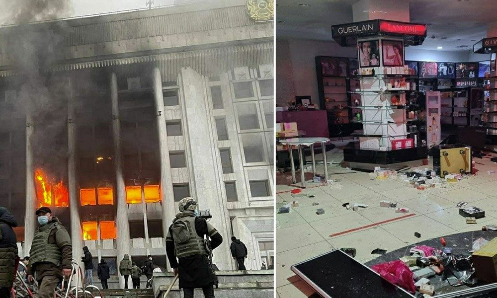 Asimismo, se han registrado saqueos masivos y enfrentamientos entre las fuerzas de seguridad y algunos manifestantes. Las manifestaciones empezaron el 2 de enero tras la drástica subida de precios del gas licuado del petróleo, pero pronto adquirieron matices políticos, lo que ha conllevado a la dimisión de los miembros del Gobierno y el apartamiento definitivo del poder del expresidente Nursultán Nazarbáyev.