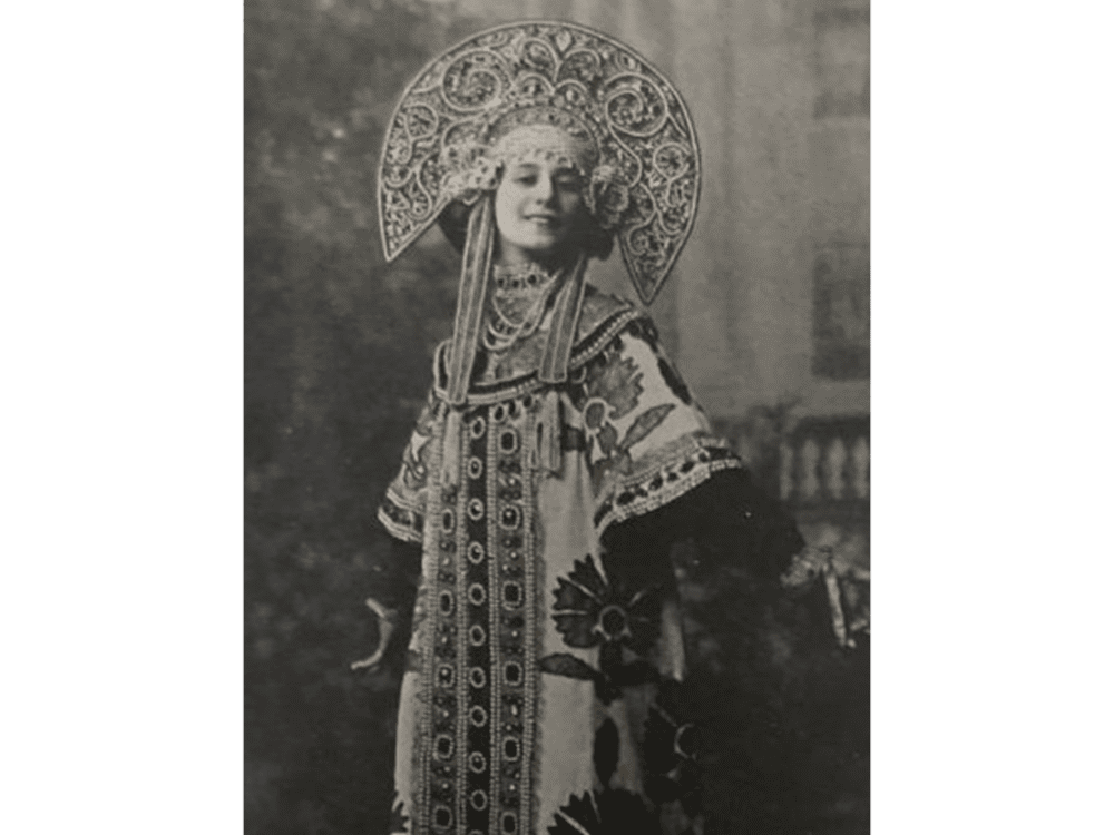 La siguiente cumbre de la popularidad del kokóshnik comenzó en 1909, cuando la compañía de ballet creada por el empresario ruso Serguéi Diáguilev y conocida como los Ballets Rusos se celebró en París ―y luego en Londres y otras ciudades europeas― causando sensación en toda Europa Occidental. Así, Diáguilev presentó a Europa el ballet ruso, la ópera y el lujoso traje nacional ruso. La estrella de la célebre compañía, bailarina Anna Pávlova, aparecía en los escenarios luciendo al menos dos tipos diferentes de kokoshniks.
