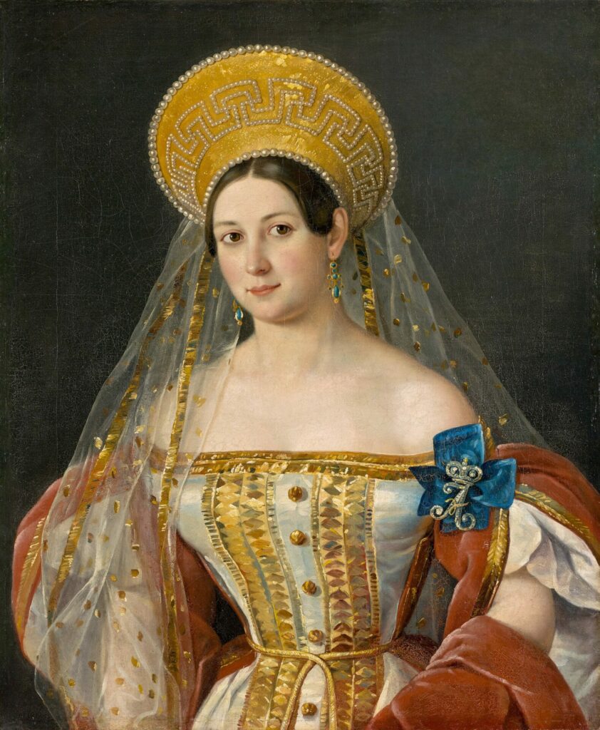 En el año 1834, el zar Nicolás I emitió un decreto que introducía una nueva vestimenta uniforme para las damas de la corte. Esa indumentaria se parecía al sarafán y se complementaba con un tocado. Mientras las jóvenes solteras llevaban una cinta de pelo, las mujeres casadas debían usar una cofia tradicional rusa llamada povóinik o un kokóshnik.