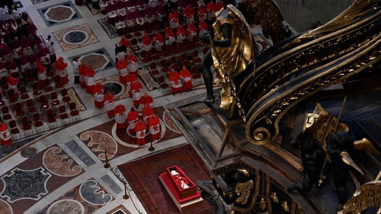 “Queridos hermanos y hermanas, con profundo dolor, ahora acompañamos los restos mortales de nuestro Papa Francisco a la Basílica Vaticana, donde él ejerció a menudo su ministerio como Obispo de la Iglesia de Roma y Pastor de la Iglesia Universal”, comenzó la oración.