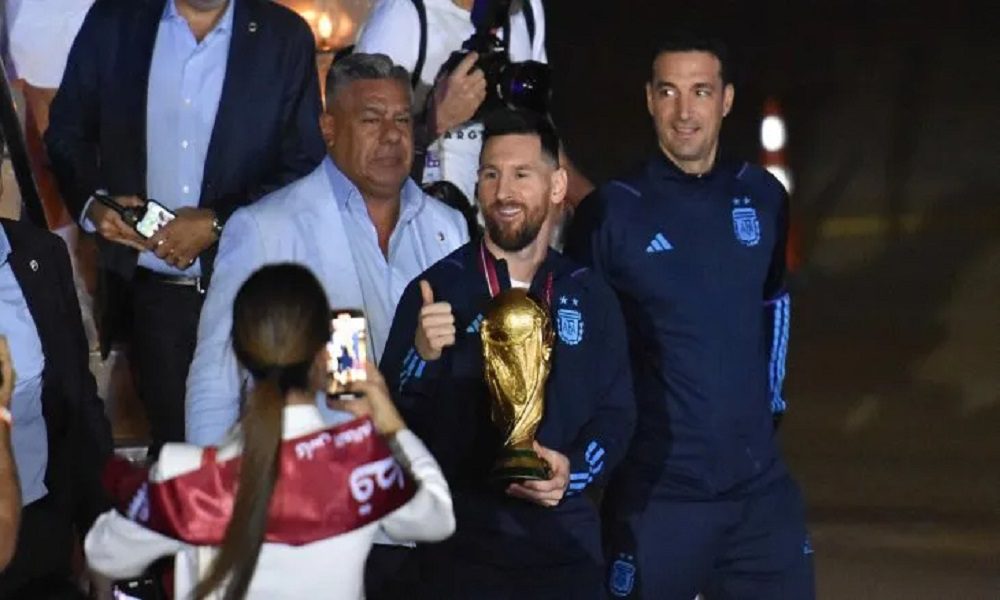 Los héroes de «la Scaloneta» volvieron al país en la madrugada de este martes, en un avión de Aerolíneas Argentias, luego de ganar la Copa del Mundo de Qatar, la tercera de nuestra historia. Así volvían a pisar el suelo patrio.
