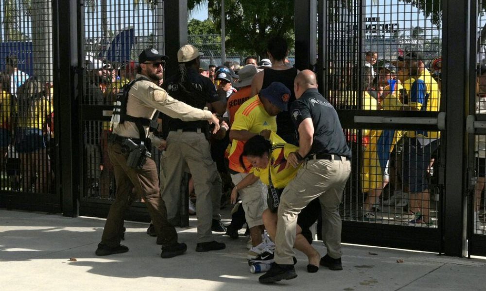 Nadie se quería perder la final de la Copa América entre Argentina y Colombia. Y esa locura por estar sí o sí en el Hard Rock de Miami llevó a que se concentre mucho más hinchas de los que tenían entradas. Los incidentes empezaron pasadas las cinco de la tarde y el epicentro del descontrol fue la Puerta Sudoeste de la casa de los Miami Dolphins: Allí fue donde fanáticos de ambos seleccionados, aunque en su mayoría cafeteros, intentaron primero filtrarse por la zona de acceso de los periodistas acreditados y después comenzaron a trepar las vallas. La policía de Estados Unidos respondió como era esperado: represión y varias personas detenidas, además de que se generaron varias corridas en distintos accesos.