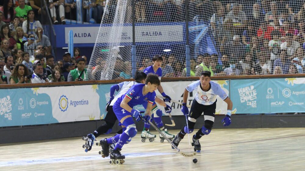 El día de fiesta para el hockey sobre patines, en su capital, esperaba la gran final de los chicos argentinos frente a los italianos, pero también jugaban las otras ocho selecciones que participaron en el Mundial Sub 19 en los World Skate Games.