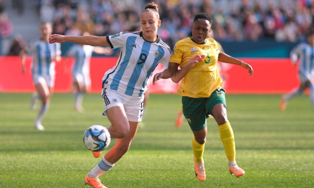 La paridad se quebró a la media hora. Una desconcentración de Mayorga le permitió a Kgatlana picar al vacío y abastecer a Motlhalo, quien festejó con suspenso debido a que en primera instancia su gol fue anulado por una presunta posición adelantada de su compañera. Sin embargo, la revisión del VAR detalló que la demorada salida de la defensora argentina habilitó a la delantera sudafricana.