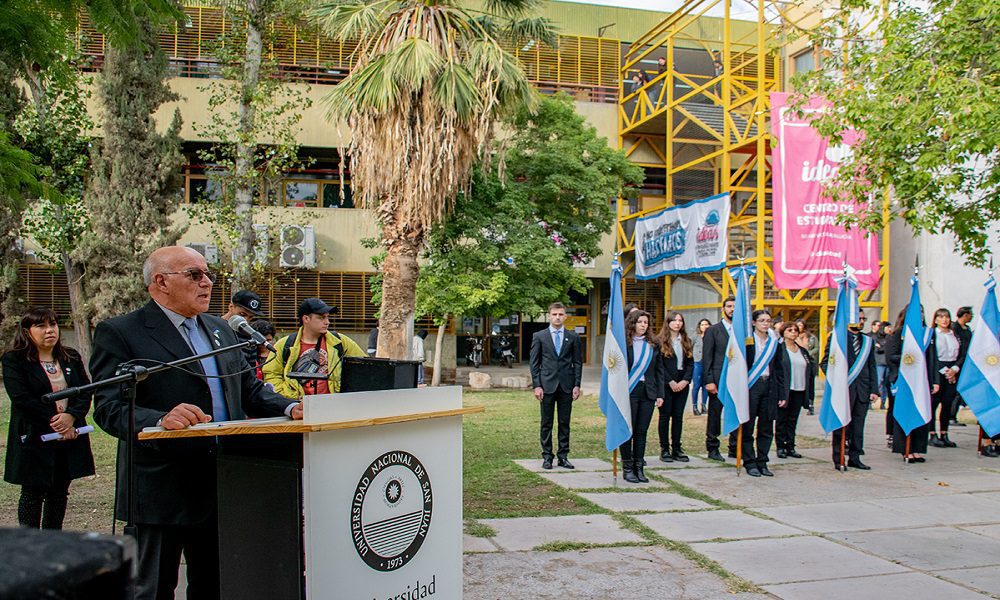 Finalmente, el rector de la UNSJ, Tadeo Berenguer, expresó: “Estamos conmemorando como todos los años la gesta de Mayo, para rendir un homenaje a aquellos visionarios, patriotas. Lo debemos hacer siempre con la misma impronta que nos dejaron nuestros próceres, que debemos trabajar unidos, solidarios, con un compromiso por la Patria. Esa gesta fue la que marcó la institucionalización de nuestra Patria, y la reflexión que debemos tener es que, aunque siempre tenemos problemas por delante, no debemos perder la impronta que ellos nos dejaron y es la de trabajar con compromiso, con solidaridad, con valor. En aquella época y ahora siempre han aparecido críticos, que todo lo critican y nada lo encuentran bien. Hay que saber discriminar aquellos discursos de los permanentes críticos, que lo único que buscan es el desaliento y la desesperanza. Debemos llevar adelante una revolución inclusiva, solidaria, empática con todos los que tenemos al lado porque justamente estos discursos de odio, egoístas y críticos son los que están permitiendo que se miren para otros lados”.