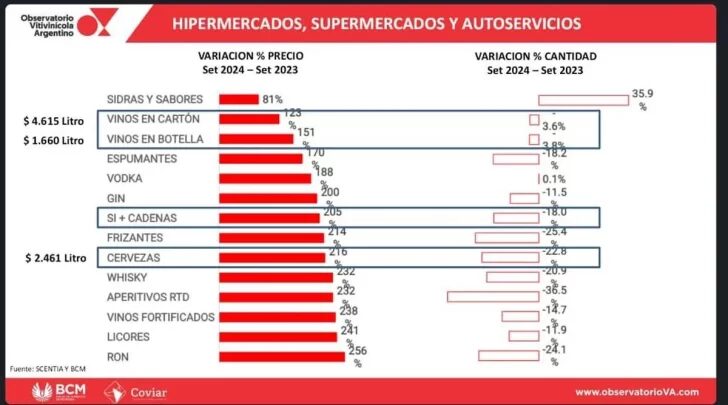 Casi no hubo excepciones. Porque mientras el vino tinto apenas sumó (0,1%), el blanco resignó un 4,5%.