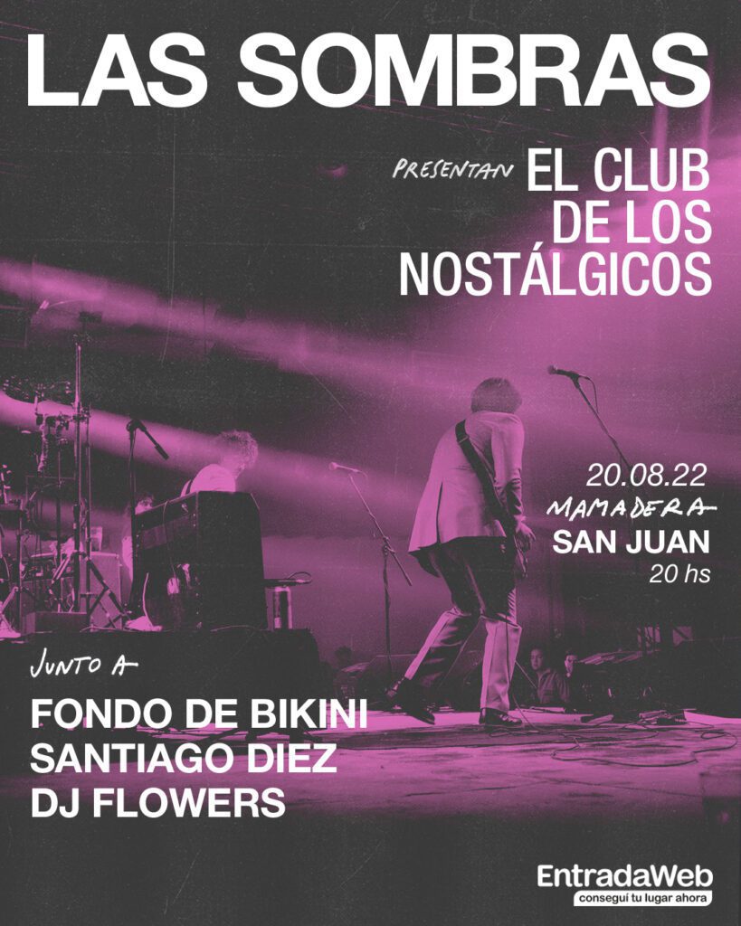 Luego de lanzar dos adelantos ‘Me Dijiste Tu Nombre’ y ‘Las Vueltas de la Vida’, Las Sombras lanza su nuevo trabajo discográfico «El Club de los Nostálgicos». En este caso, advirtieron que amplíaron la paleta de sonidos, incluyendo sintetizadores y percusiones que refrescan la propuesta clásica de dos guitarras, bajo y batería. Y agregaron: «Eso lleva a una sonoridad que le guiña a algo bien argentino de la década de los ochenta, con grupos icónicos como Virus y Los Encargados como norte. Sumado al ya clásico imaginario de Las Sombras, más bien atemporal, que dialoga con los fundacionales Manal y Los Gatos pero también con artistas de la nueva generación».