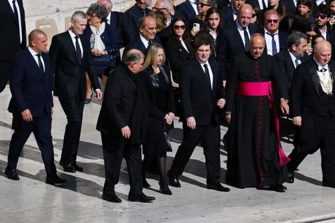 Milei, compatriota del papa Francisco, en primera fila, junto a la delegación italiana encabezada por Sergio Mattarella y Giorgia Meloni, tal y como dispone el estricto protocolo que seguirá el funeral.