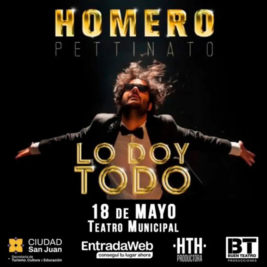 Este sábado 18 de mayo a partir de las 21:30 horas, Homero Pettinato llega al Teatro Municipal con su unipersonal «Lo doy todo». Entradas en venta.