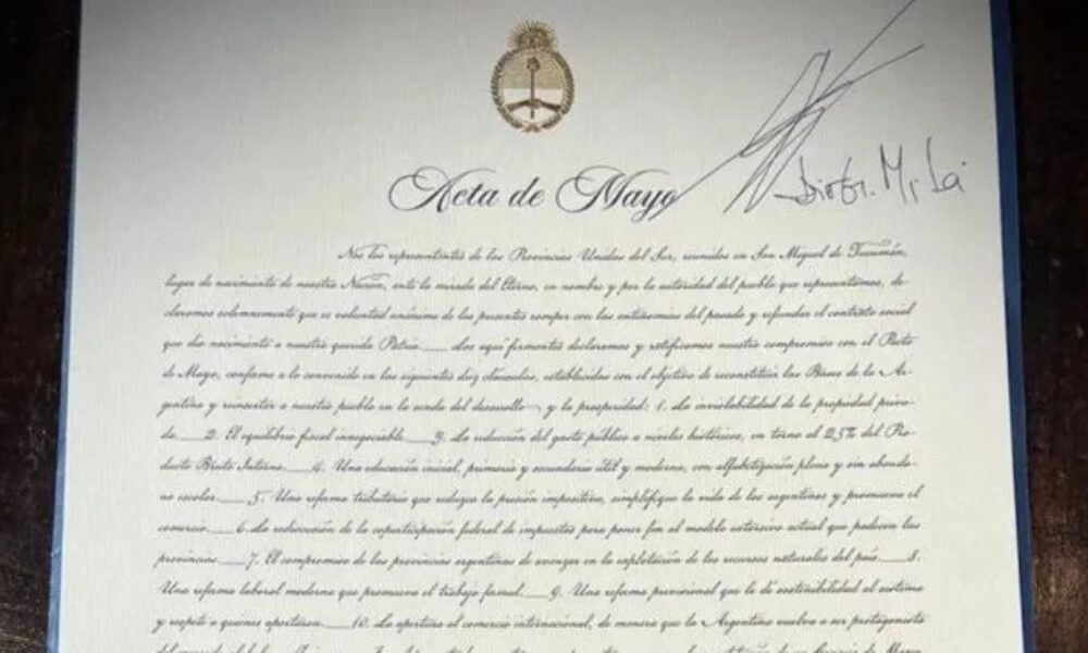 El texto del Acta del Pacto de Mayo contiene 10 puntos