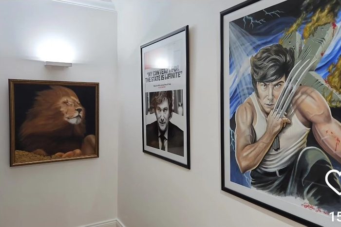 En las últimas horas circularon por la red social dos fotos de la quinta presidencial de Olivos, con el particular gusto de Milei por decorar las paredes con imágenes alusivas a su persona. Una forma de manifestar culto a la personalidad puertas adentro de la residencial oficial.