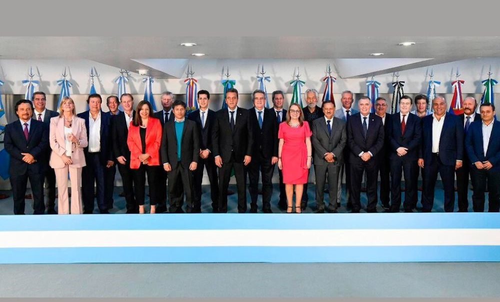 «Empezamos a trabajar en la construcción de nuevos pactos federales, Argentina tiene la oportunidad de ampliar la coparticipación de las provincias, pero además de simplificar el sistema impositivo. Tenemos obviamente que trabajar en la evasión, pero tenemos que ir a la simplificación tributaria», sostuvo Massa en conferencia de prensa tras el encuentro con los mandatarios.