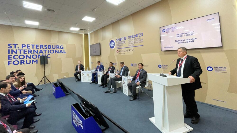 El Quinto Diálogo Empresarial EAEU-ASEAN se celebró el jueves 15 de junio, al margen del Foro Económico Internacional de San Petersburgo (SPIEF). El año 2023 marca el quinto aniversario de la firma del Memorando de Entendimiento entre la Comisión Económica Euroasiática y la Asociación de Naciones del Sudeste Asiático sobre Cooperación Económica, así como el quinto aniversario de la Asociación Estratégica ASEAN-Rusia.