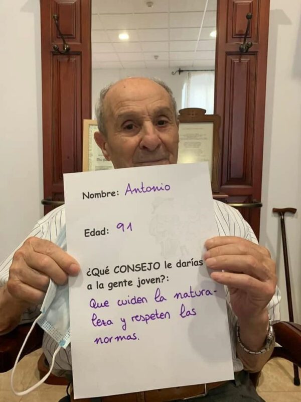 «Que no aguanten nada que no les hagan feliz», responde María (86 años). «Que respeten y valoren a las mujeres» (Sebastián, 91); «Que respeten a las personas mayores porque todos lo seremos algún día» (Dolores, 88); «Que disfruten de la edad pero siempre con prudencia» (José, 89); «Que no peleen con nadie que es muy bonito llevarse bien» (Amalia, 83); «Que tengan cuidado con lo que puedan ofrecerle en la calle» (Domingo, 90)… son sólo algunos de los 19 mensajes que han dejado escrito estos usuario del asilo lebrijano.