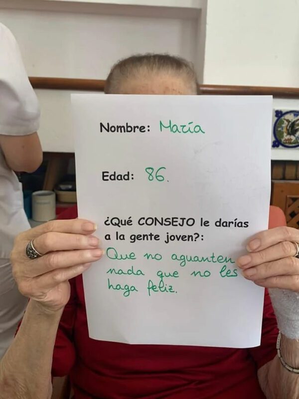 «Pero no solo es eso, sino que, además, nuestros mayores son una fuente de sabiduría. De ellos aprendemos muchas lecciones de vida, ya sea porque nos aconsejan explícitamente, o porque nos lo dan a entender de diversas maneras. Sus vidas, sus historias, sus anécdotas, sus vivencias… son grandiosas. Cada una de ellas, nos enseñan y nos llenan día a día, tanto profesional como personalmente.