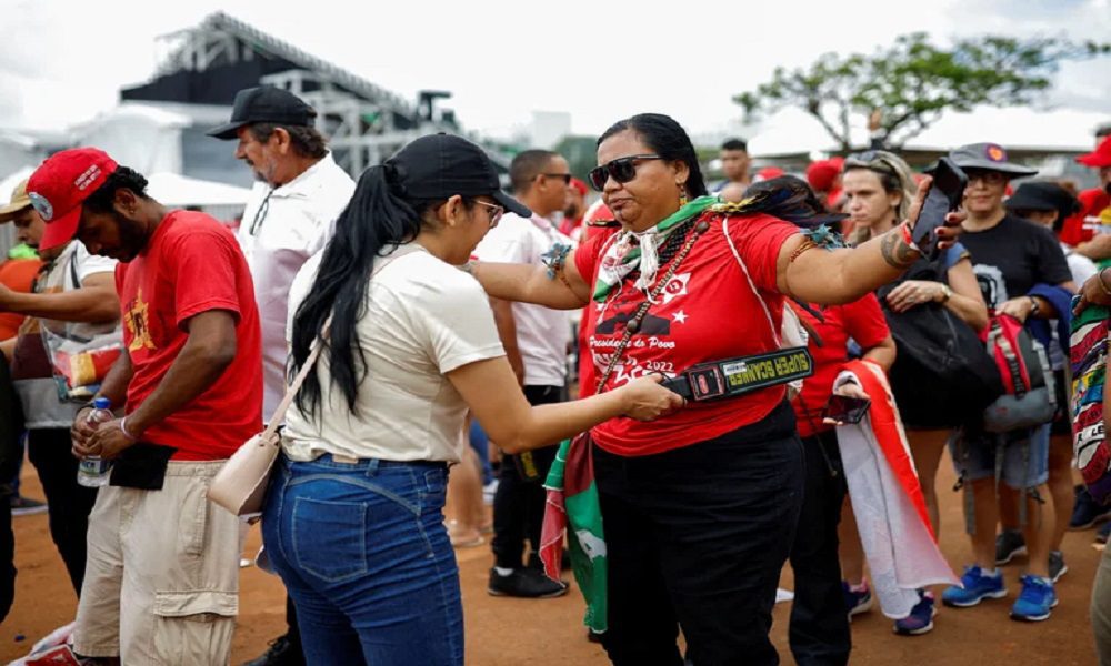 «Olé olé Olé Olá, Lula, Lula», es el principal grito de los manifestantes, en su mayoría vestidos de rojo, el color del Partido de los Trabajadores, que hacen las filas ante los puestos de control y cacheos que dan ingreso a la Explanada de los Ministerios y a la Plaza de los Tres Poderes, que conecta el Congreso, el Supremo Tribunal Federal y el Palacio del Planalto, la casa de gobierno.