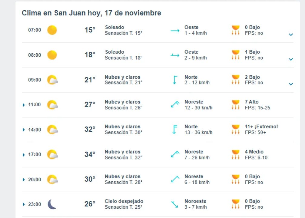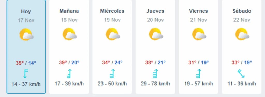 A su vez, añadieron que la jornada del martes será la más calurosa de la semana, debido a que la máxima llegará a los 39°. Además, sumaron que habrá viento zonda con ráfagas que no superarán los 39 kilómetros por hora.