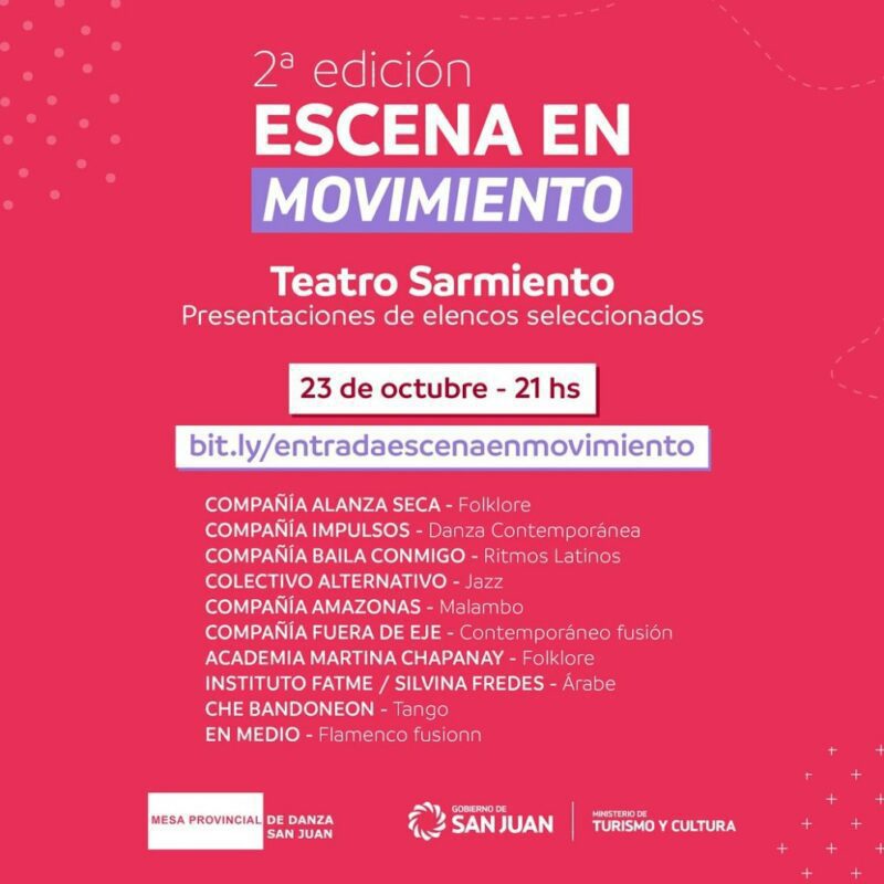 El Ministerio de Turismo y Cultura invita a la comunidad a participar de la segunda edición de Escena en Movimiento, con la intervención de diez propuestas coreográfica-musicales seleccionadas.