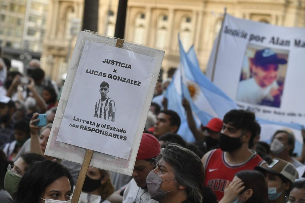 Familiares, amigos y allegados se concentraron durante la tarde del lunes en las inmediaciones del Palacio de Tribunales para pedir Justicia por Lucas González, el adolescente de 17 años asesinado el pasado miércoles por efectivos de la Policía de la Ciudad en el barrio porteño de Barracas.