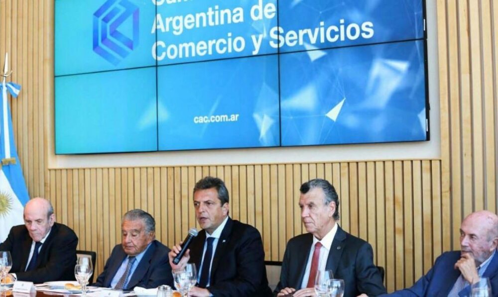 Massa formuló esas declaraciones en el marco de una reunión con los principales empresarios de la Cámara Argentina de Comercio y Servicios (CAC), en la que tenía a su lado al titular de la entidad, Natalio Grinman, y al presidente de Corporación América, Eduardo Eurnekian.