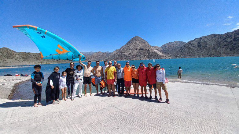 Mateo, con su enorme experiencia en los deportes de vela, se adaptó rápidamente al manejo del wind foil, disfrutando la experiencia en el imponente marco del Dique Punta Negra.