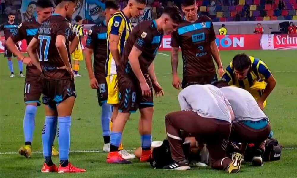 Pellegrino se golpeó en una acción aérea con el defensor de Rosario Central Facundo Mallo a los diez segundos del segundo tiempo.