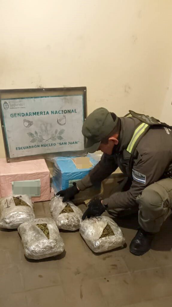 Los gendarmes detectaron las cajas con estupefaciente al momento de controlar un transporte de pasajeros procedente de Córdoba con destino San Juan.
