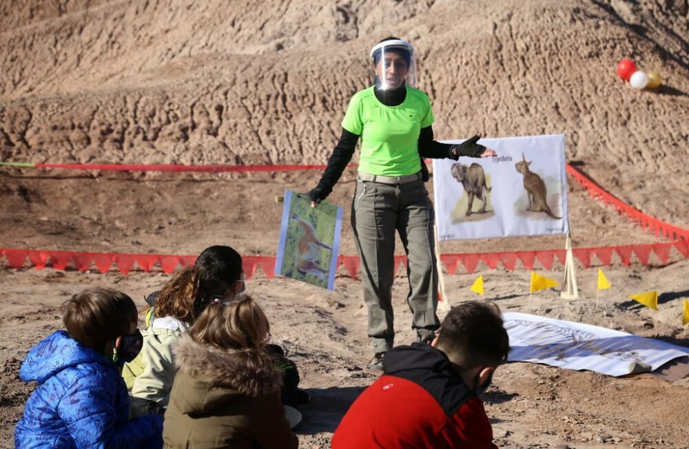 Los más pequeños llegan acompañados por sus padres entusiasmados por saber todo sobre el mundo de los dinosaurios. Con todo el protocolo sanitario correspondiente, se les entrega un chaleco de paleontólogo y herramientas, como lupa, pincel y espátula. La acción comienza cuando los chicos descubren las réplicas de restos de fósiles de mamíferos que vivieron en la era del hielo en San Juan.